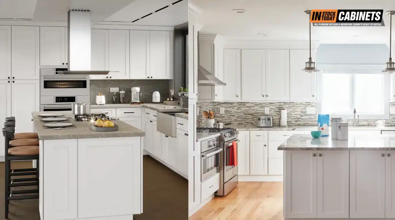 Both formats arrive pre-finished from the factory with industrial coatings tested to KCMA A161.1 standards (resistance to vinegar, lemon juice, coffee, alcohol, and hot/cold cycling). Site-painting RTA cabinets is mostly a thing of the past.